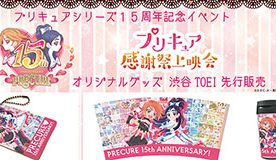 「プリキュア」感謝祭上映会 vol.1にて先行販売されるプリキュア15周年上映会オリジナルアイテムの情報を更新しました。 ※15周年アイテム以外の商品の販売も予定しております。 物販商品の購入にあたっては、下記注意事項を必ずお読みください。 ※購入は、本上映会の座席指定券をお持ちのお客様に限らせていただきます。 ※混雑緩和のため、会計の回数を、お一人様一回までとさせていただきます。 ※商品により、購入いただける数量に制限をかけさせていただく場合がございます。 ※販売は、当日のみとなります。事前のご予約は承っておりません。 ※販売は、当日、渋谷TOEIの劇場オープン時からとさせていただきます。 劇場オープン時刻は、決まり次第、劇場ホームページにて告知いたします。 ※徹夜および早朝の劇場へのご来場はご遠慮ください。 ※お支払いは現金のみとなります。クレジットカードはご利用いただけません。 “「プリキュア」感謝祭上映会 vol.1”の詳細はこちら http://www.precure-anniv.com/20180201170020.html 渋谷TOEI 劇場ホームページ http://theaters.toei.co.jp/theaters/shibuya1/